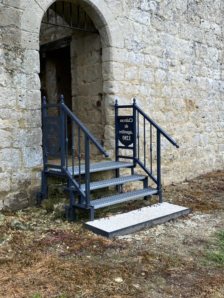 Claude a pris contact avec un artisan spécialisé de Vic-Fezensac qui avait déjà réalisé le portail métallique de l’entrée-ouest. Celui-ci a établi rapidement un projet qui a reçu l’accord de l’architecte des Bâtiments de France. La commande a pu être lancée immédiatement grâce aux dons exceptionnels reçus de plusieurs adhérents en 2023. Les travaux ont été réalisés ces derniers jours et tous ceux qui pourront venir au château pour la fête du Patrimoine, et même avant, pourront pénétrer par la porte ouest sans avoir l’impression de prendre des risques.
