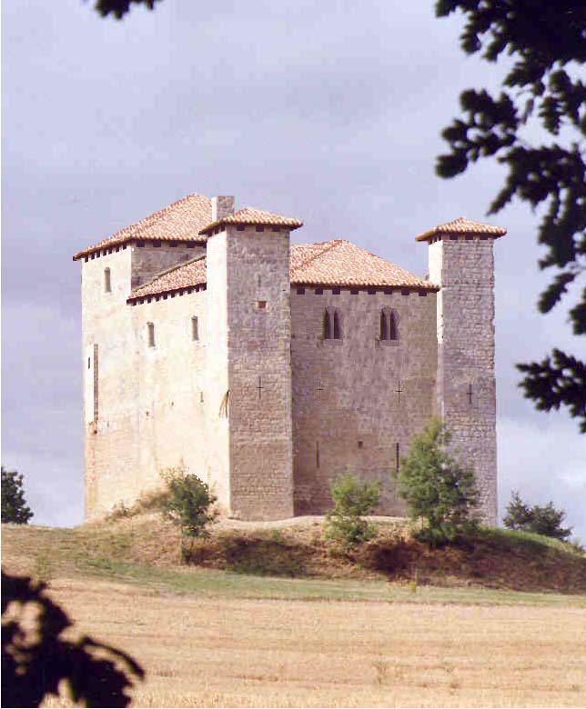 faisait construire le château que vous voyez ici, donc vers 1280. Il prit comme modèle une idée qui flottait alors dans la région, même si je suis un des premiers châteaux de ce type. C’était celle d’une construction modeste, sans place perdue, à la structure claire traduisant ses fonctions : pas de cour intérieure, mais une tour aux murs épais (un peu plus d’un mètre actuel), élevée sur trois étages, à plus de vingt mètres de haut, accolée à un bâtiment allongé terminé par deux tours de guet sur le côté le plus abrupt de la colline. Au-dessus d’un premier niveau (cinq mètres de haut) destiné aux réserves (grains, vins), un étage ouvert sur l’extérieur par des archères sur les quatre faces permettant la défense en cas d’attaque, puis, au-dessus un étage résidentiel avec cheminée monumentale pour la cuisine, chambre « noble » dans la Tour. Cet étage était destiné à l’abbé lorsqu’il venait à Lagardère ou à son représentant. Il était prolongé, au nord, par une « galerie » (un hourd) entre les tourelles, complétant la fonction de guet vers le nord et l’ouest, et surmonté au seul niveau de la tour par un étage supplémentaire permettant le guet vers le sud et l’ouest. Malgré la légèreté des structures, j’étais parfaitement adapté à un poste de défense et de guet, solidement bâti face aux moyens destructeurs de l’époque : les canons n’existaient pas.