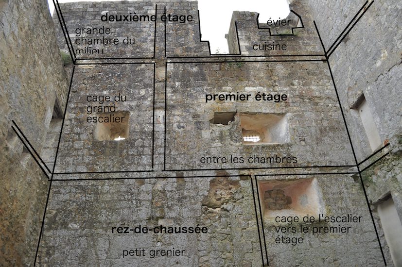 L’étage « résidentiel » (deuxième étage), repérable par la trace d’une très grande cheminée (c’est la seule pour tout le château à cette époque).